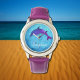 Montre Joli dauphin violet dans l'eau - ajouter le nom