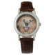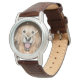 Ajoutez un peu de gaieté dorée à votre poignet avec cette montre unique ! Design présente une photo d'un chien de recherche doré souriant, en closeup!