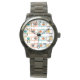 Cette montre pour femmes a un design moderne Kandinsky inspiré du milieu du siècle de jeux de rectangles formés par une ligne continue avec un intérieur ovale dans des couleurs rétro d'orange, brun, or, et turquoise sur un arrière - plan blanc. Si vous aimez le design mais préférez différentes couleurs, envoyez-moi un message.