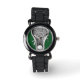 Montre à thème crosse avec bâton de laxisme sur arrière - plan vert. Ajoutez le nom ou les initiales à personnaliser.