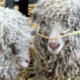 Un design photographique de deux chèvres angora très mignonnes avec une décoration en paille.