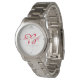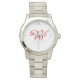 La montre pour bracelet pour femmes à ton argenté a une petite couronne de couleur gris-argent à 12h00, un visage blanc avec des marques de temps gris-argent et vos trois monogrammes personnalisés en écriture fantaisie en rouge. A une ligne pré-formatée sous les monogrammes lisant "Les familles sont pour toujours" avec une date en dessous de votre personnalisation. Customisez cette montre plus loin et choisissez un style différent, des couleurs, etc.