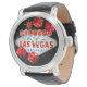 Montre cool avec le célèbre panneau Welcome to Fabulous Las Vegas avec des dés rouges. Un graphisme artistique original par urbanphotos.net Cette montre n'a pas de chiffres sur le visage. J'en ai un avec des chiffres aussi.