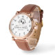 Create your own custom brand luxury watch. Timeless elegant watch dial design with fine indexes. Add your own custom monogram, custom name, designer name, initials, year of birth, logo, icon, photo image, etc. Sophisticated presence of modern minimalist style with elegant script typography template. Luxurious watch for him. Make it a cool new gift for boyfriend, boyfriend, dad, father, husband, brother, son, boyfriend, grandpa, grandpa, grandfather, stepdad, uncle, coworker, employee, company boss, business partner, colleague, best friend, teacher, coach or retiree. Unique monogrammed gift ideas for men's birthday, graduation, anniversary, retirement, vacation, wedding party, appreciation, employment, work, etc. Large diameter about 44mm. Classic vintage style with 22mm fashion black leather wrist strap. White or custom background color. Perfect for 20th, 30th, 40th, 50th, 60th, 70th, 80th, 90s celebrations. Affordable quartz watches under $100. Nice for casual daily wear and special occasions. Also available for other models with brown leather or steel bracelet.