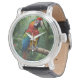 Cette belle montre présente un perroquet de macaw coloré dans une jungle magique.