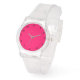 Style : Montre en Silicon rose féminin Le cadeau parfait pour les filles sportives que vous aimez, cette montre de sport classique est un accessoire idéal pour toute activité. Bracelet en silicone solide et confortable, ajoutez vos texte et photos sur le cadran personnalisable pour créer une montre a votre image. Montre au poignet pour femmes Matériel : Bracelet : Coque en silicone Dimensions : Face : 1,18" de diamètre Bracelet : 9,5" x 0,79" de Coque : 1,57" de diamètre Poids : 0,082 lb analogique à 3 mains Japan Quartz® Impression personnalisée en couleur sur le visage Disponible en 2 couleurs - Boîtier blanc et rose 1 an fabricants garantie limitée Batterie incluse Ce produit est recommandé pour les 13 ans et plus