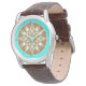 Montre Mandala motif en chocolat, bronzé et turquoise