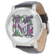 Élégant purplemonogramme M dans le style d'un manuscrit illuminé de la période médiévale ou de la renaissance.