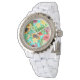 Montre Mix-fruit tropical, fleurs et feuilles en bleu