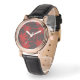 Stylish red and grey monogrammed watch with elegant maple leaf art.
