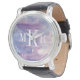 Un design abstrait d'aquarelle douce aux couleurs bleu et violet. Artiste : Chris Paschke