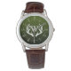 Les bois de cerf blanc silhouette sur un arrière - plan de gradient vert de forêt et votre choix de lettre monogramme en blanc.