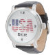 Le drapeau américain sur ce style de montre de la section hommes, avec une bracelet en cuir vintage noir, et une montre à grand visage qui ne sortira jamais de style. Modifiez facilement les initiales ou supprimez-les pour en faire le vôtre en utilisant le Modèle fourni. Voir "À propos de ce produit" sur le côté pour des spécifications détaillées sur les tailles, les matériaux, le type de fermeture, la garantie. L'impression sur ces montres est excellente.