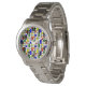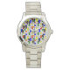 Cette montre pour femmes a un design moderne du milieu du siècle d'une grille avec des carrés et des rectangles colorés. Il a également des cercles colorés placés sur les lignes de grille. Si vous aimez le design mais préférez différentes couleurs, envoyez-moi un message.