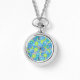 Motif Art déco à base de motif traditionnel stylisé en chrysanthème utilisé dans les textiles japonais, dans les tons bleu, turquoise et vert citron, surligné en blanc, sur un arrière - plan gris clair et argenté