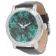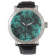 Montre Motif Abstrait noir vert fractal