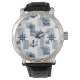 Design marin sans couture avec voilier, boussole, ancre et décoration de voilier arrière - plan géométrique bleu et blanc