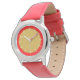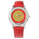 Décorez votre poignet avec style avec cette montre avec un visage rouge et or bicolore et des chiffres blancs.