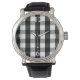 Noir & blanc classique Lumberjack Plaqué montre à main. Chic, chatoyant buffle noir et blanc coquille plaid. Produits correspondants disponibles. Pour toute question ou demande personnalisée, envoyez un courriel à cheryl@cheryldanielsart.com. "Black and White Lumberjack Plaid" de Cheryl Daniels © 2015.