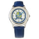 Barney boys nom de ligne unique signifiant chevaliers heraldry boucliers enfants montre poignet. Bouclier style Chevalier monogramme lettre B nom d'art simple cadran numéroté parfait pour dans les tons de vert, bleu blanc et gris. Personnalisez avec votre propre nom et nom signifiant pour un grand cadeau personnalisé unique, cet exemple est pour les noms avec la lettre B et lit actuellement Barney Strong comme un ours. Autres articles correspondants disponibles. Dessin de bouclier unique, art graphique, recherche de nom, rédaction et design par Sarah Trett. www.sarahtrett.com pour www.mylittleeden.com