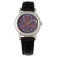 Le visage de cette montre design est un signe de paix entouré d'un arrière - plan abstrait dominé par le rouge et le bleu. C'est un peu funky et classe en même temps. Attends ? Est-ce possible ? Oui. Disponible également dans les styles homme, unisex, et enfant.
