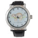 Aquarelle; paresse souriante sur branche d'arbre, arrière - plan bleu clair. Personnalisez la montre avec le nom ou un autre message spécial