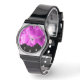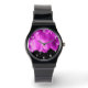 Montre Pétales de fleurs roses chaudes sur noir