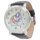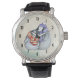 Une montre avec une adorable illustration d'un couple de pingouins qui se blottit ensemble. Portant des écharpes d'hiver et des casquettes. Placez-vous sur un arrière - plan crème.