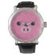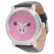 Un mignon visage de porcelet de couleur magenta rose pâle avec nez rond rose et yeux noirs brillants. Un design art numérique original.