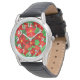 Cette montre pour hommes a un design de Noël de poinsettias éparpillé sur un champ de rayures vertes.