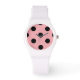 Éclairez votre monde et souriez avec une montre de la collection Polka Dot de Manor Hill - pois noirs sur un visage de montre rose.