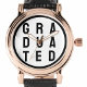 Pour l'étudiant nouvellement diplômé. Un étudiant diplômé Wristwatch dit "gradué" avec le mot divisé sur 3 lignes et contenu dans un cadre de boîte.