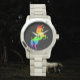 Ce design accrocheur présente une licorne majestueuse couleur arc-en-ciel sur une montre en bracelet argent surdimensionnée. La licorne vibrante se distingue par son argent poli et élégant, symbolisant la liberté, la magie et l'individualité. Parfait pour ceux qui aiment faire une déclaration audacieuse et embrasser avec fierté leur esprit unique et coloré. Cette montre est l'accessoire ultime pour quiconque croit en la puissance des rêves et de l'expression de soi.