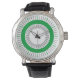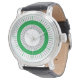 Un visage de montre avec un design de cercles concentriques, dans lequel des rayons sont disposés pour marquer les minutes et les heures dans le cercle extérieur. Cette version a un premier cercle intérieur de couleur solide et la deuxième bague intérieure a des rayons minuscules. Tous les rayons s'alignent correctement et les heures sont marquées d'une ligne plus audacieuse dans le cercle extérieur, offrant à la fois une face d'horloge décorative mais pratique.