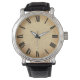 Le design vintage du visage de montre a des chiffres romains audacieux sur un arrière - plan parchemin coloré. Essayez ce design sur n'importe quelle montre sur ce site. Dérivé de freepik.com.