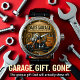 Wall clock with rustic garage-themed design, showcasing a motorcycle, tools, and nostalgic decor, perfect for a man cave or workshop.