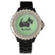 Chien écossais personnalisé WATCH en arc vert sur arrière - plan vert. Peut être personnalisé avec des noms, votre nom de famille ou dire. Un cadeau parfait pour vous ou votre amant écossais préféré.