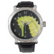 Une aquarelle d'un hippocampe jaune vif orne cette montre !