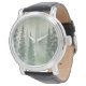 Illustration ou peinture digitale éthérique et atmosphérique représentant une forêt de conifères denses entourée d'un brouillard ou d'un brouillard épais. Les grands pins et les à feuillage persistant créent des couches de profondeur, les arbres de premier plan montrant des détails plus distincts et des nuances de vert plus profondes, tandis que les arbres qui s'éloignent dans l'arrière - plan s'estompent dans des teintes douces, pâles et dénaturées de sauge et de gris. L'ambiance générale est calme, mystérieuse et tranquille, évoquant l'impression d'un matin calme et profond dans le désert.
