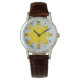 Ajoutez un peu de soleil à votre tenue chaque jour avec le Soleil brillant Jaune Gradient avec Montres Romaines! Cette montre bracelet présente un grand soleil stylisé, jaune vif au centre et approchant l'orange au bout des rayons triangulaires. Les chiffres romains qui entourent les bords apportent une touche de tradition qui, combinée aux marques de tiques noires et à l'heure, à la minute et à la seconde main, fournissent tout ce dont vous avez besoin pour savoir exactement quelle heure il est.