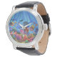 Sous les gravures Sea Art, affiches, cadeaux et accessoires présentent notre tableau original d’un garçon en maillot de bain jaune et d’une fille en maillot de bain rose en snorkeling dans l’océan, en regardant une bouffée de poisson numériquement peinte par notre talentueux illustrateur pour enfants, Traci Van Wagoner. Cette oeuvre colorée est également interactive. Pouvez-vous trouver toutes les bêtises du côté gauche ? Trouvez un requin assis sur un canapé orange en regardant la télévision, et une tonne d'autres choses amusantes qui capteront votre oeil. Cette oeuvre d'art fantaisiste et amusante a de curieux enfants en snorkeling, des chevaux de mer, du corail, du poisson soufflé, des sirènes, des étoiles de mer, des anguilles et d'autres formes de vie marine.