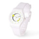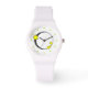 Accessoirisez avec cette montre céleste très mignonne pour n'importe quelle occasion. Quatre étoiles jaunes sur un croissant de lune noir, entouré par les points verts, sur un arrière - plan blanc.