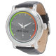 Personnalisez cette montre avec votre choix de nom ou de texte, ou laissez vide si vous le souhaitez. Votre surnom n'est peut-être pas "SPEEDY" mais c'est un nom parfait pour cette montre de style Speedometer. Arrière - plan gris avec vert, jaune et rouge-orange. Coordonnées en lettres noires avec les sangles réglables en cuir noir. Coque en acier inoxydable.