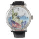 Cette montre personnalisée au poignet présente la Statue de la Liberté.