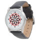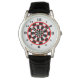 Un design de montre rouge et noir qui ressemble à un tableau de bord avec un arrière - plan blanc conçu pour les amateurs de jeux. De grands nombres noirs pour marquer les heures sont sur un arrière - plan blanc pour faciliter l'indication de l'heure.
