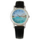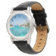 Montre Superbe plage tropicale Bleue avec des huttes de c