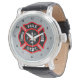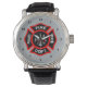 Masculine Malltese croix montre les pompiers et les autres intervenants d'urgence - Croix maltaise rouge, noire et blanche, bouclier contre un arrière - plan gris et en métal brossé. Numéros de visage de l'horloge noire. Un magnifique cadeau d'anniversaire pour les pompiers ou les pompiers pour la remise des diplômes. Joli cadeau de retraite pour le chef pompier, aussi!