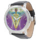 Montre SYMBOLE VÉTÉRINAIRE DE CADUCE D'OR / Vert pourpre