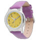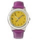 Trois abeilles drôles de bande dessinée volant sur un arrière - plan jaune tissé entouré par les points noirs. Ayez l'amusement passer le temps avec cette montre très mignonne !