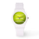 Tennis Custom Ball Watch boule jaune avec texte blanc lavé vous pouvez personnaliser avec votre propre nom. Un cadeau parfait pour un joueur de tennis